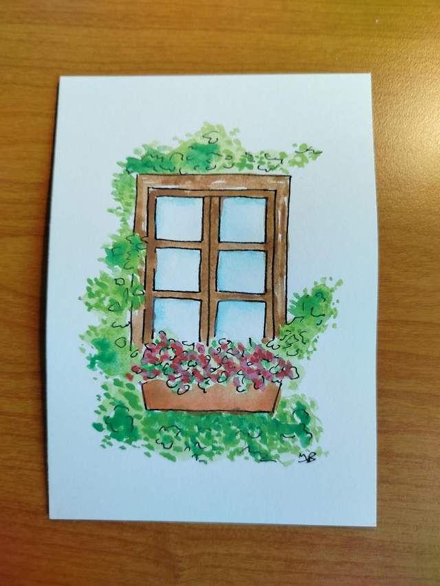 Aquarelle carte de voeux carte d'anniversaire illustration fenêtre végétale