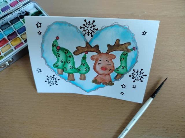 Carte de Noël à l'aquarelle.