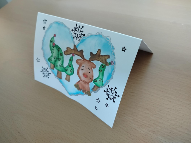 Carte de Noël ''coeurs de Noël '' petit renne