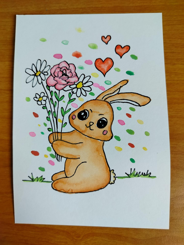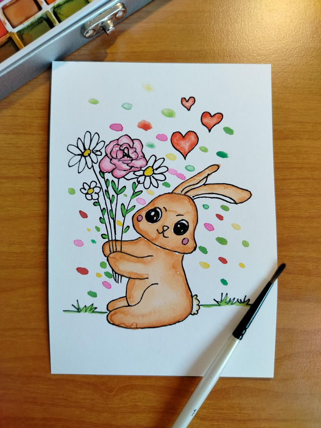 Carte illustration lapin à l'aquarelle sur papier 250g format A6