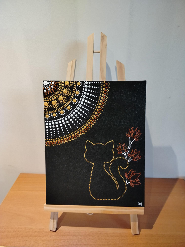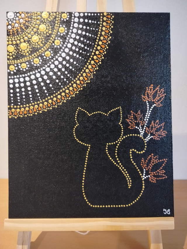 Peinture mandala chat et fleurs